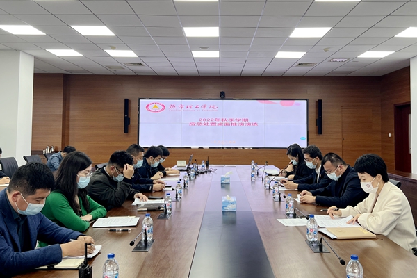 本网讯(后勤资产处 李楠)10月3日,2022年秋季学期应急处置桌面推演演练在综合办公楼428会议室进行。学校党委副书记、副校长、疫情防控领导小组执行组长王传超,各工作组负责人、应急保障专班成员参加了活动。