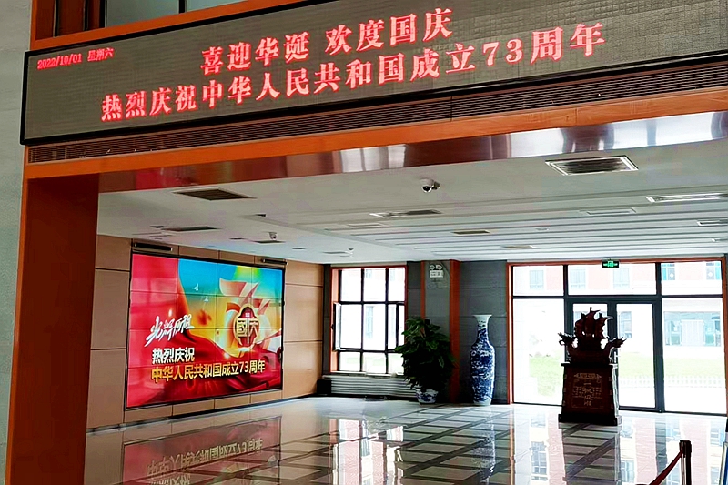 办公楼、图书馆、小花园等公共区域的电子屏、海报、道旗焕然一新,热烈庆祝新中国成立73周年,喜迎党的二十大胜利召开。