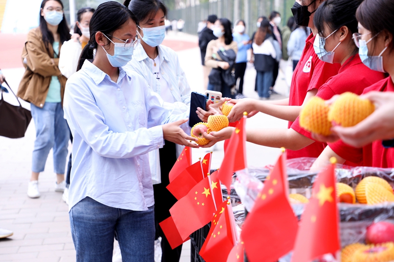 学校发放红彤彤的苹果,师生唱响《我和我的祖国》