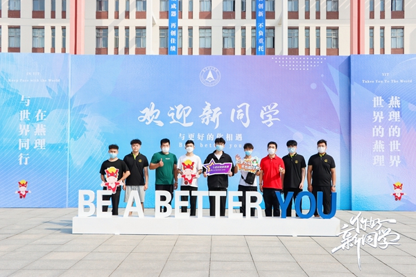 勤奋创新,不负重托,意气风发求真知;璞玉成器,再创佳绩,纵横天下绘宏图!在主教学区广场,巨幅迎新标语和“欢迎新同学”的合影区布置营造了青春向上的迎新氛围,欢迎着2022年升本燕理的新同学“与更好的你相遇”!在启航大道、海棠大道等道路上,“以优异成绩迎接党的二十大胜利召开”“勤奋创新 璞玉成器”“在燕理与世界同行”等鲜艳的道旗寄语广大新同学们的梦想与未来!