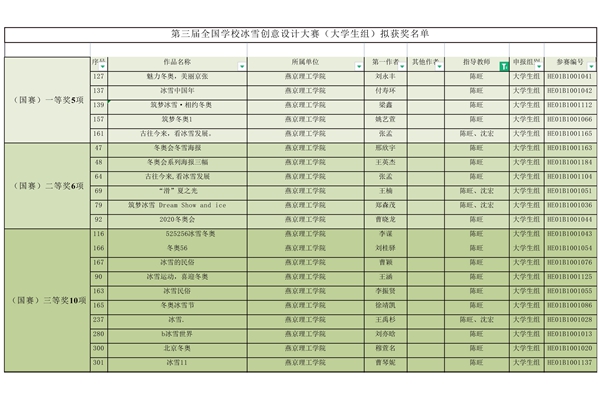 艺术学院21名学生获第三届全国学校冰雪创意设计大赛一二三等奖
