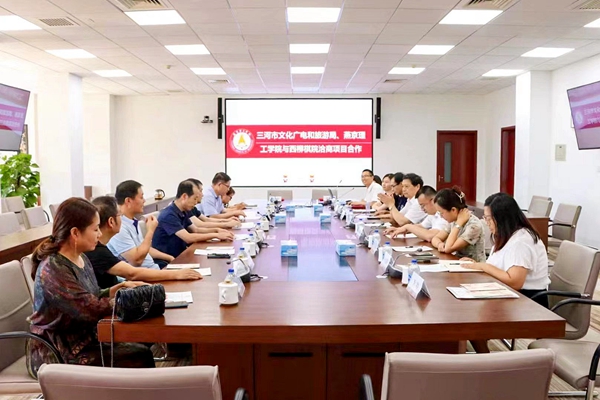 三河市文化广电和旅游局局长杨建武对学校推动地方乡村振兴发展战略做出的贡献表示感谢,他指出“校地合作”应对三河市文化振兴、人才振兴、经济振兴等做出应有的努力和贡献,通过校政企合作的方式共创共建,共谋发展,共同推动三河市经济文化和社会的发展,并希望继续为三河的乡村振兴发展助力、为三河的政治经济文化长期发展助力。