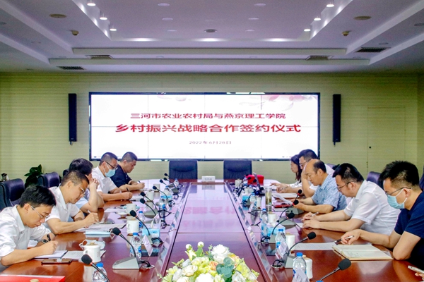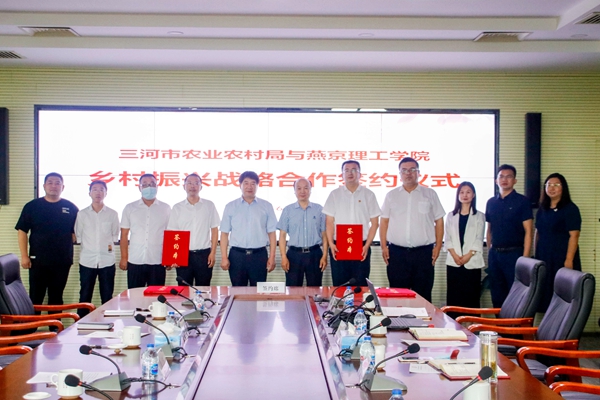 会上,三河市农业农村局崔晓龙局长、我校党委副书记、副校长、乡村振兴学院院长王传超代表政企双方签署了战略合作协议。协议的签署,标志着燕京理工学院与市农业农村局达成全方位、高层次、宽领域、多形式的战略合作关系,进一步推动乡村振兴战略的具体落地。