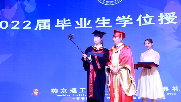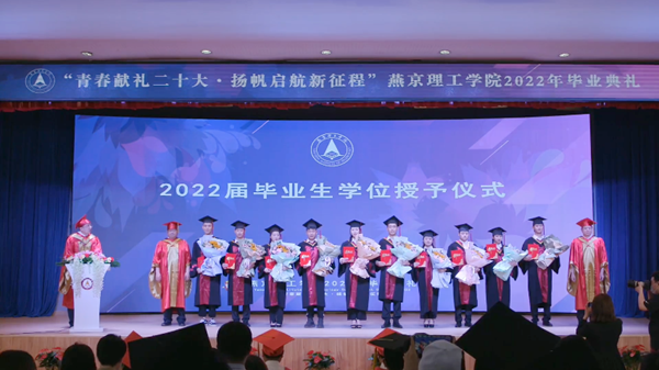 副校长宋伟、校长助理吴敏现场为优秀毕业生代表送上毕业花束,颁发了荣誉证书。广大毕业生将牢记“勤奋创新,璞玉成器”的校训,以满腔激情、昂扬姿态,服务社会,实现自我,为社会主义现代化强国建设贡献燕理人的智慧和力量。