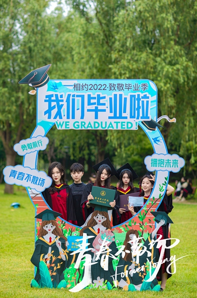 典礼前后,毕业生们在校园各处拍照,将青春定格在海棠燕理。