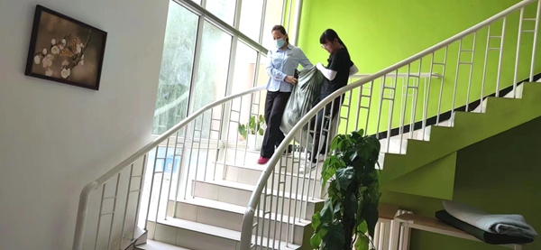 玉苑宿管员提到,“学生回来了,我们要严格做好学生信息登记工作,登记好才能借给学生钥匙,昨天工作到了11点多。”在学校每一栋离校毕业生宿舍楼入口都有宿管值守,不仅为进出楼宇工作人员做好疫情防控信息登记,同时也认真做好2022届毕业学生返校、离校台账。在雅苑、兰苑宿舍走廊里,不时看到宿管值班员帮学生来回搬运一袋袋沉重的行李,这也许是他们现在能为曾经生活在这里的学生唯一能做的事情了。