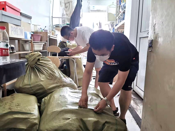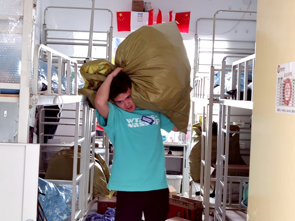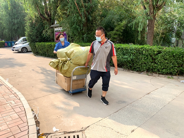 国际商学院毕业班辅导员王萌萌介绍,他们前期已完成对学生个人贵重物品的邮寄工作。该院每位老师分别带领几位返校毕业生帮助同学一起打包行李,他们分工明确,大大加快了整理邮寄学生物品的进度。