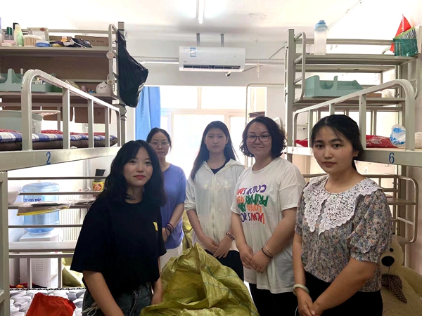 这是雅苑218宿舍孙海洋同学和其文法学院辅导员赵烨婷的对话,她们师生之间没有什么陌生感,就像朝夕相处地朋友一样愉快地进行行李打包却在欢声笑语中充满不舍与别离。