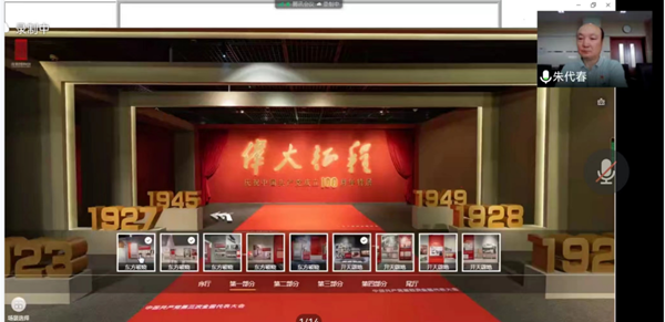 本网讯(马克思主义学院宋帅 燕伟璇)“七·一”党的生日来临之际,为善用百年大党的厚重历史讲好“大思政课”,6月16日,由马克思主义学院组织的“云端”上的大思政课邀请党委书记朱代春,带领学生“云参观”《伟大征程——庆祝中国共产党成立100周年特展》党史博物馆,重温中国共产党波澜壮阔的百年征程。