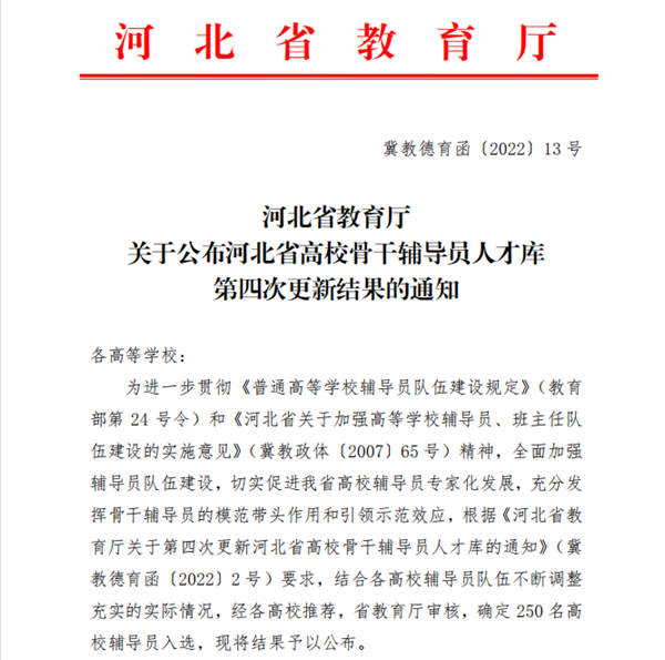 河北省高校骨干辅导员人才库第四次更新结果的通知