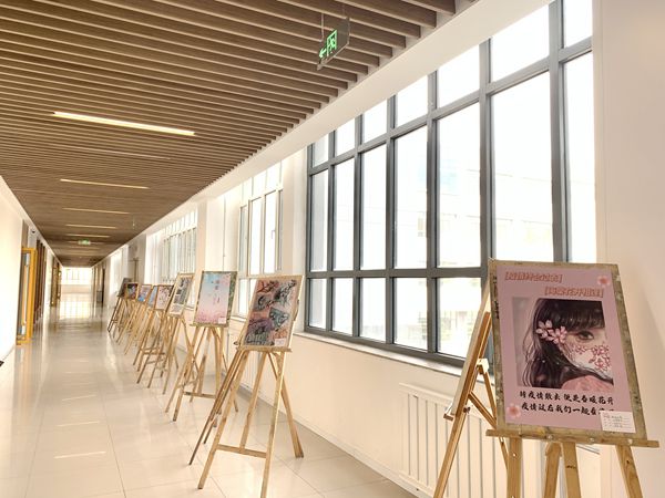 由艺术学院与建筑学院联合征集了数百幅学生们的居家艺术作品,主题包括海棠花、防疫和建团百年等。遴选近百幅优秀作品在微博等新媒体平台进行展示。同时,将线上展示的优秀作品进行打印装裱,直播中在图书馆正门台阶进行优秀作品展示。