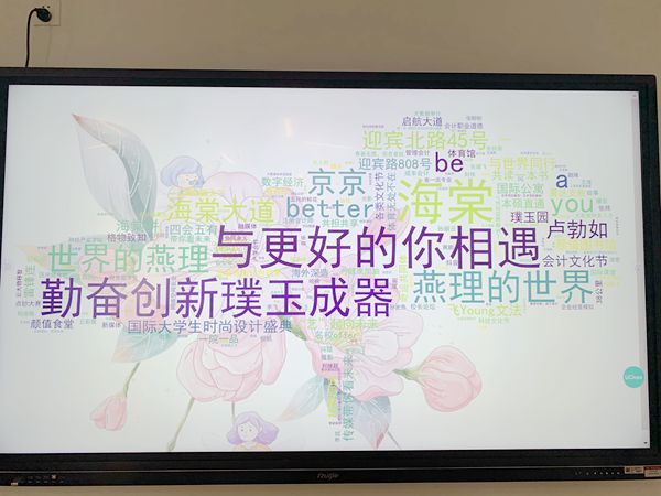 将海棠花融入校园点滴,尽显燕理特色。今天,各二级学院还为大家准备了一场别具特色的活动,联合筹备了“十大学院海棠热词云”主题活动,邀请广大师生对各学院专业特色、教学特色、学生印象等进行开放式贴标签,利用大数据分析生成了海棠花形象的热词云。信息科学与技术学院副院长陈炜博士现场介绍了由他主持开发的热词云系统,并分享了设计原理与背后的故事。