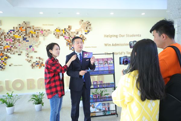 海棠树孕育海棠花,燕理校园培育社会精英。由国际教育学院主办的“直通世界名校的燕理人”板块,在国际学苑一层进行直播。国际教育学院院长吴仲元介绍,自2017年以来,我校与全球百余所知名大学深度合作,打造了海外深造项目。我校一直致力为学生营造国际化办学氛围,努力搭建国际化人才培养平台,创新国际化人才培养模式。去年五月我校2017级优秀学子李鹏展同学获得了爱丁堡大学的录取offer,该校在2022年QS世界大学排名中位列第16位。同时,她也为本次海棠文化节发来了祝福视频,并希望学弟学妹们珍惜光阴,努力学习,像燕理的海棠一样绽放青春风采;成功收获多所名校offer、即将赴海外深造的大四学生陈泽龙也表达了对学校海棠的思念,并寄语学弟学妹:要充分利用学习时间,努力提升自己,也成为那一朵在燕理盛放的海棠。