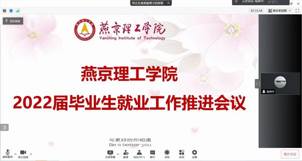 本网讯(就业指导与校企合作中心 李艳杰)为全面落实省委、省政府就业工作要求,应对突发的新冠肺炎疫情,有效推进2022届毕业生就业工作,实现毕业生“稳就业”目标,4月1日上午,我校以“校内+校外,线上+线下”的形式召开2022届毕业生就业工作推进扩大会议。校长杨庚宇、副校长刘元园、副校长王传超出席会议并讲话,各二级学院院长、负责教学和学生工作副院长,学生处负责人,全体专业负责人、2022届毕业班辅导员以及就业指导与校企合作中心全体成员共130余人参加了此次会议。