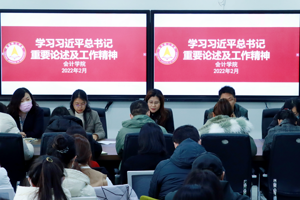 2月23日,会计学院院长杨良带领会计学院教职工共同学习了会议精神。她提到在数字化时代大背景之下,会计学院要主动拥抱数字技术,不断探索数智化人才培养新模式,培养出走在时代前沿的学生。合理运用会计学院数智经济与管理实验中心,推动大数据、人工智能等新技术与商科领域的交叉融合,紧跟企业用人的需求,培养新型数字经济商业人才。2022年,会计学院要立足教育教学工作新起点,发扬钉子精神,重实干、求实效,认真学习2022年全国教育工作会议精神,落实立德树人根本任务。继续坚持理论教学和实践教学相结合,培养应用型人才为目标,以财经产业学院为依托,开拓产学合作、协同育人新局面。