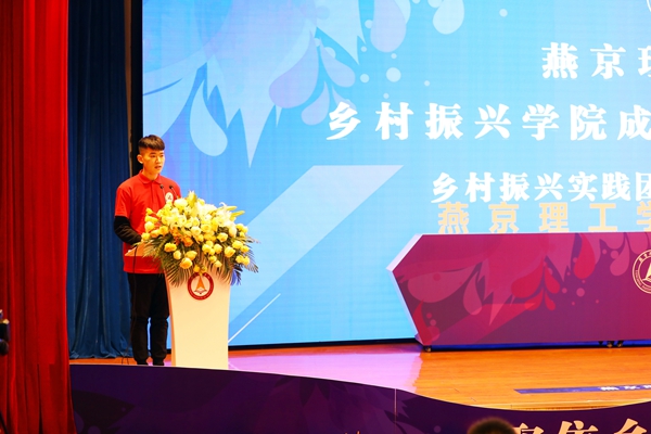 青年学生是推进乡村振兴战略的一支重要力量。成立仪式上,乡村振兴实践团同步组建,学院执行院长宣银为实践团进行了授旗,学生代表郑涛发言,表达了坚持用行动服务乡村的铮铮诺言。