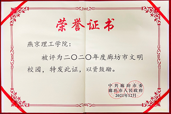 建设文明校园 服务美丽廊坊:燕京理工学院获授2020年度廊坊市“文明校园”称号