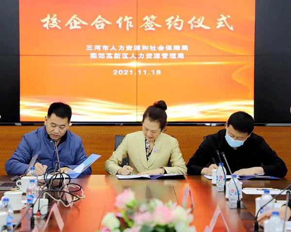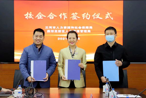 我校与三河市人力资源和社会保障局、燕郊高新区人力资源管理局签署政校合作协议