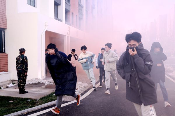 随着疏散演习总指挥下达指令,1800余名学生在辅导员和校卫队员的引导下迅速撤离到安全区域,均能按照要求弯腰捂鼻,整个演练过程情境逼真,安全规范,未产生拥挤踩踏事件。随后,燕郊消防救援站队员向大家讲解了灭火器、消防水带、高喷消防水车等消防器材的使用方法。