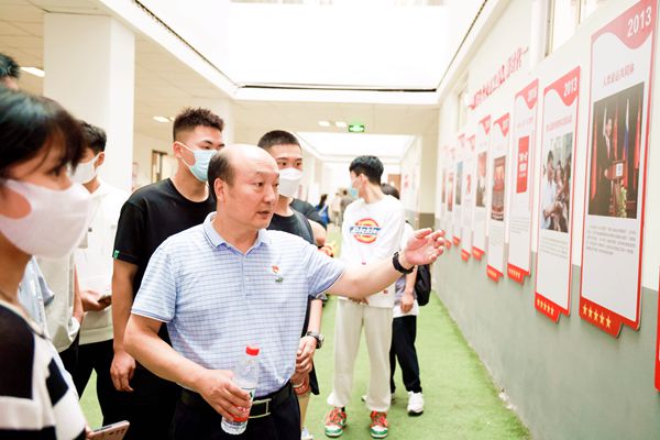 18日下午,党委书记朱代春在D楼一层党史教育展廊开讲党史。作为新生“开学第一课”的重要学习内容,朱书记变“固定”党课为“流动”党课,变“灌输式”学习为“体验式”学习。在党史教育主题展讲解中,朱书记不时与新生互动交流,增进了师生之间的亲密感,增强了新生对中国共产党的深刻认识,坚定了大家永远跟党走的信心。