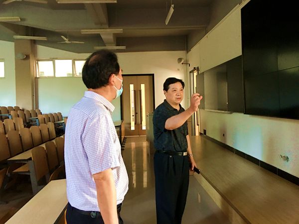 杨庚宇校长一行还视查了暑期改造的智慧教室,对改造后的教室提出了赞许。最后校长指出:开学在即,各部门、学院须在疫情防控常态化之下,完善基础设施建设和开学前保障工作,确保正常的教学与科研工作平稳有序进行。