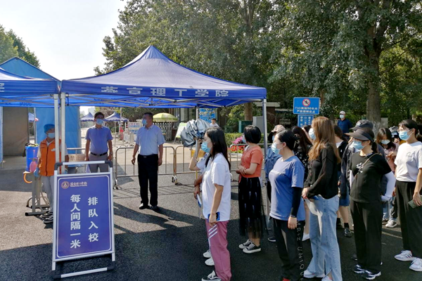 本网讯(后勤资产处 梁哲)为进一步做好校园疫情防控和2021年秋季学期开学准备工作,切实筑牢校园疫情防控安全屏障,确保学生安全、有序返校,全面落实落细党中央、国务院决策部署和省委、省政府以及省委教育工委、省教育厅、三河市政府工作要求及学校疫情防控工作方案,9月2日,学校分别在东大门、第三餐厅、国际公寓3号楼、隔离区(国际公寓5号楼)、医务室、教学楼等六个区域举行了秋季学期开学前疫情防控应急演练。副校长王传超现场进行检查指导。