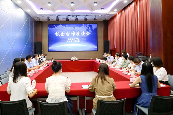 在兴远高科产业园,董事长刘永成、副总经理段立园与杨庚宇校长一行进行了座谈交流,就校企双方就共建“燕兴商学院”达成了初步意向。刘永成董事长分析了当前就业难、招聘难的现实情况,认为将企业需求前置到教学环节,企业生产过程进入课程,让学生学以致用,进一步深化校企合作势在必行。副总经理段立园就校企合作成果进行了分享,认为学校齐全的学科专业为产业园提供了充分的人才支撑,对共建产学研用一体化的商学院充满期待,可以将企业问题变成课题进行研究,发挥校企合作的力量解决企业生产经营中的难题。