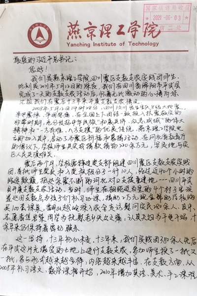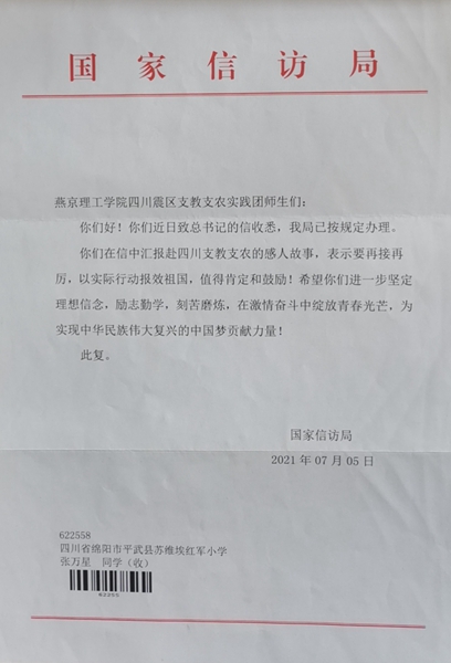 燕理师生致信习总书记 获国家信访局回信鼓励