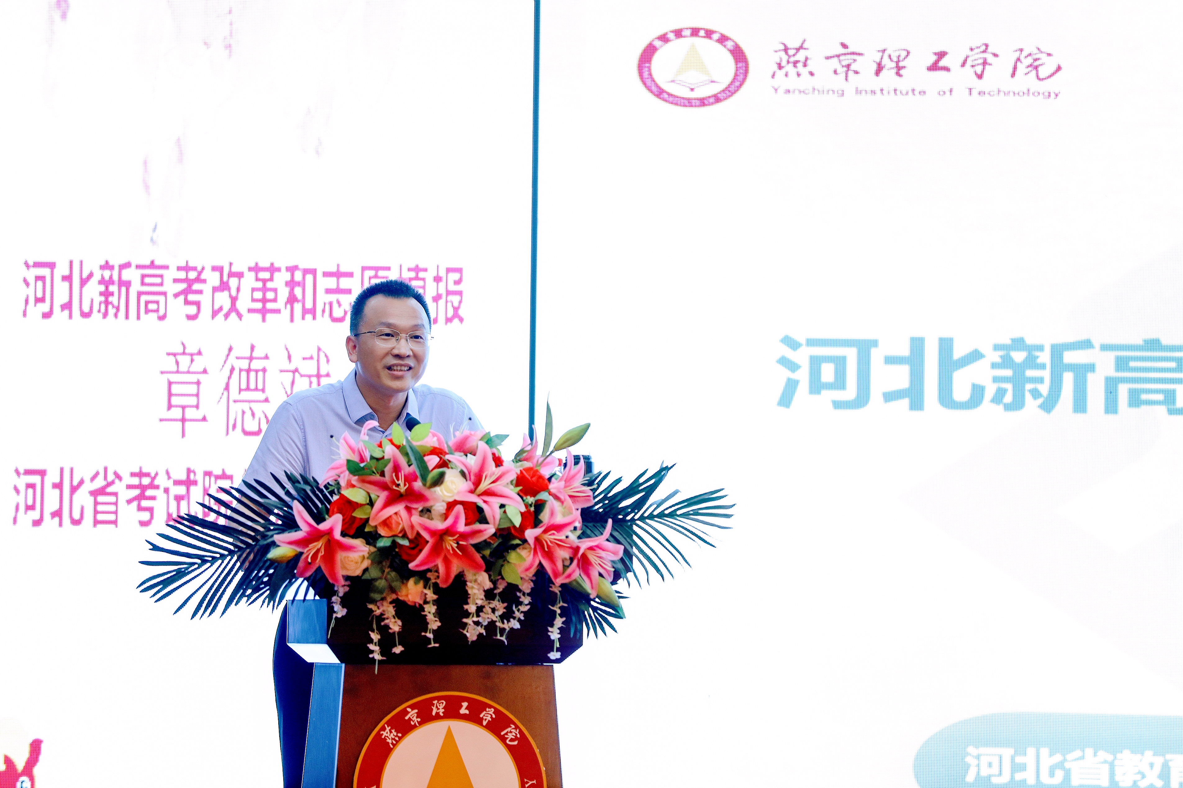 河北省考试院信息处副处长、省新课改方面专家章德斌作了“新高考改革政策解读”主题讲座。章处长对高考改革在考试、录取等政策方面的新变化,以及如何实现高中和高校的有效衔接等问题进行了详细的解读。章处长通过对比高考改革前后的变化,阐述了新高考背景下选科的重要性。他认为,高考志愿是学生生涯规划的重要阶段,中学教育者们一定要重视实力雄厚的新兴大学,在指导高考志愿填报中避免唯“层次论”,为学生做好生涯规划,成就美好未来。