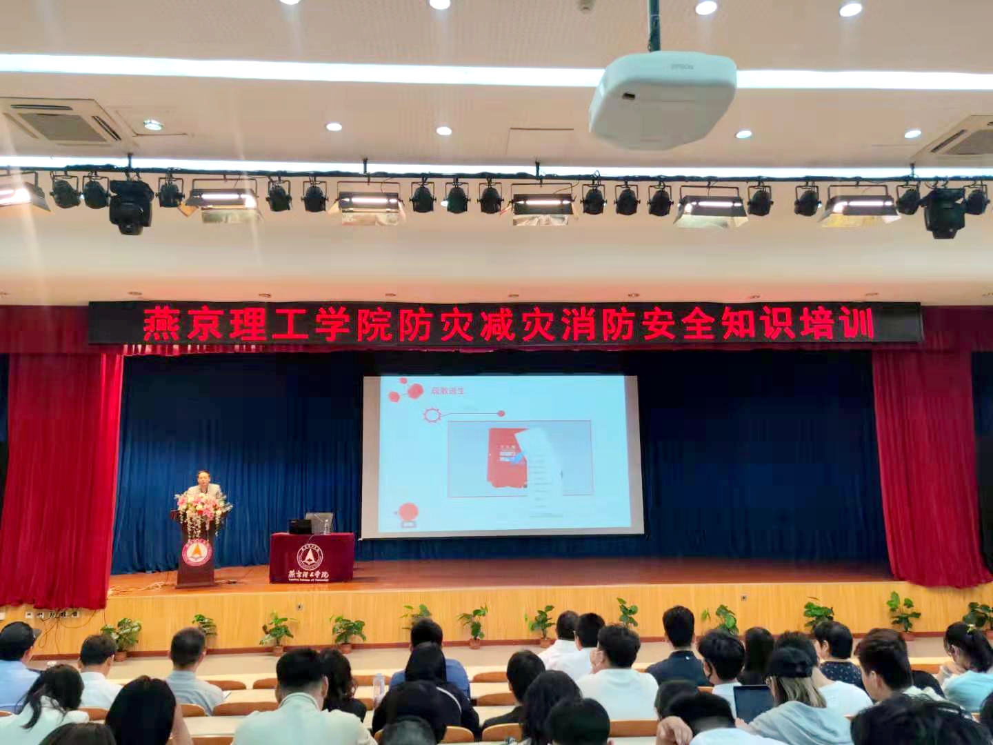 本网讯(安全工作处 刘雨晴 )5月12日,防灾减灾消防安全知识培训会在报告厅举办。学校领导王传超、宋伟,各二级学院院长、副院长,各职能部处负责人及师生代表等近600人参加了培训会。