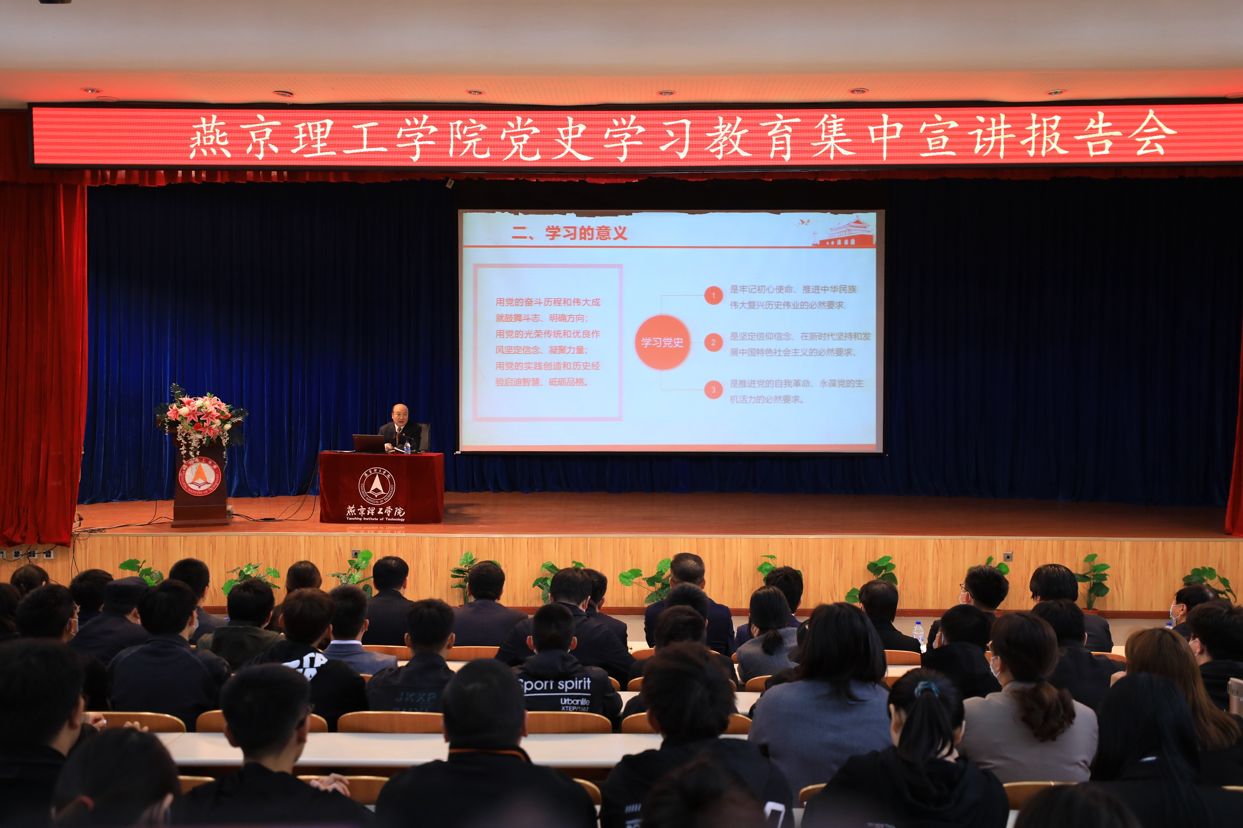 本网讯(党委宣传部 信息科学与技术学院党总支 任怀民 韩磊 岳士森 李子恒)为认真贯彻落实习近平总书记在党史学习教育动员大会上的重要讲话精神,按照省委市委统一部署,4月16日下午,燕京理工学院党史学习教育集中宣讲报告会在报告厅举行。校党委书记朱代春以“学习党史守初心,汲取力量担使命”为题作党史学习教育宣讲报告。全校师生代表500余人参加了活动。报告会由党委委员、组织部长张传凤主持。