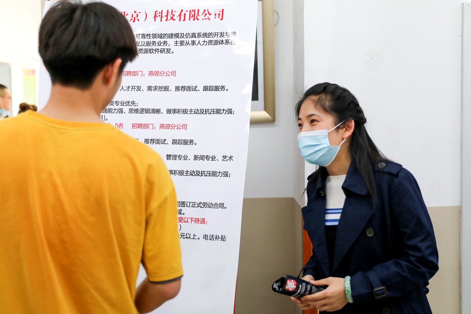 “燕京理工学院协调各方举办线下校园招聘会,是为深入学习贯彻党的十九届五中全会精神,坚决落实党中央、国务院‘六稳’‘六保’决策部署。”副校长刘元园介绍,作为今年的首场线下招聘会,学校进行了充分调研和准备,招聘会按照公司性质、招聘岗位,划分了工学类、建筑类、信息类、会计类、商科类、文法类、艺术类、传媒类八大行业重点,用人单位规模每个专场都控制在20家左右。
