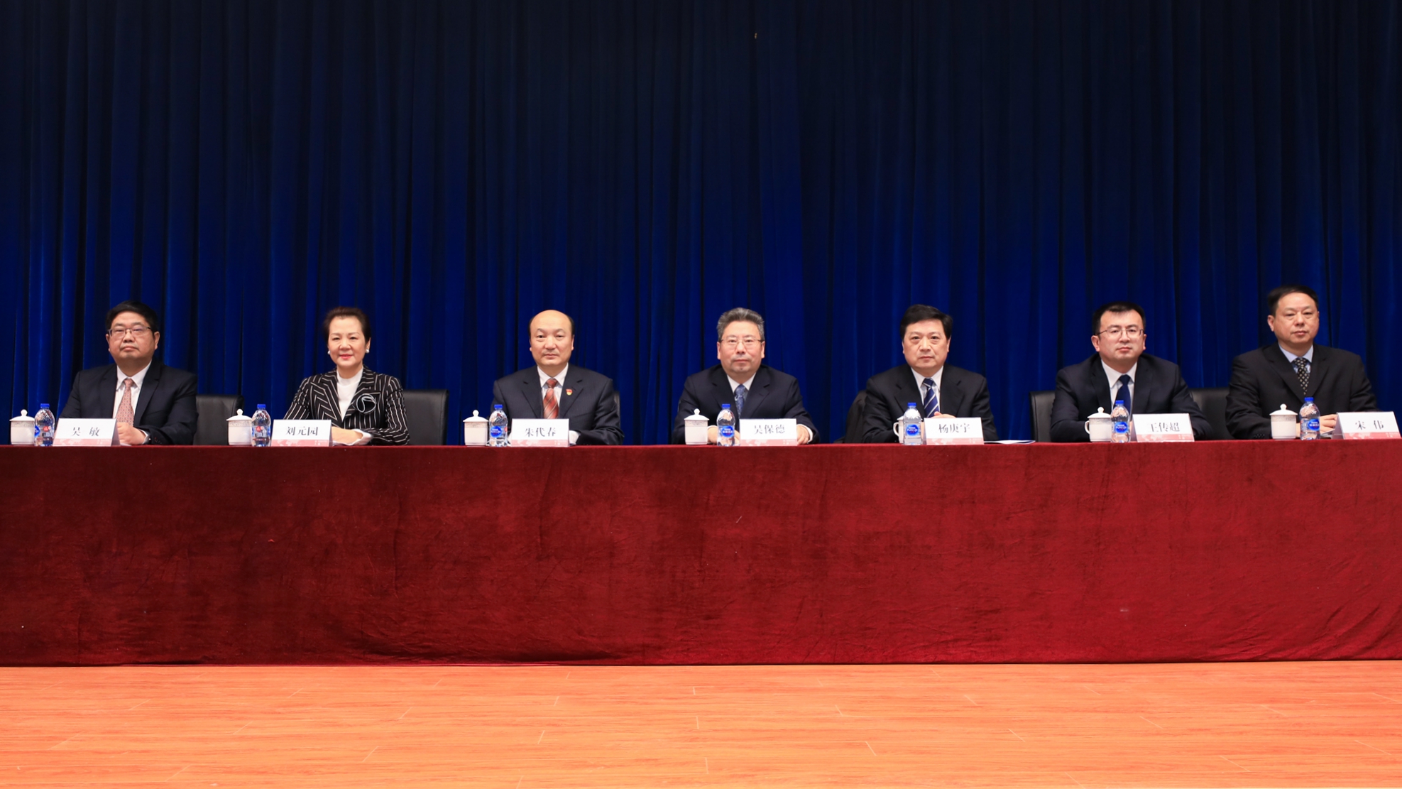 学校领导在大会主席台就坐