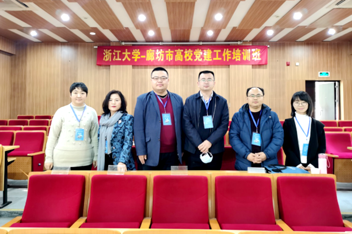 本网讯(张传凤)12月21日至27日,廊坊市委教育工委举办的浙江大学——廊坊市高校党建工作培训班在浙江大学华家池校区举办,学校党委副书记王传超、党委办公室主任张传凤、二级学院总支书记代表贾思博、朱雷以及思政教研室韩高良和刘倩老师一行六人参加了培训。本次培训班由廊坊地区各高校党建务工作者和思政教师共90余人组成。市委教育工委专职副书记徐守东亲自带班并做了讲话。
