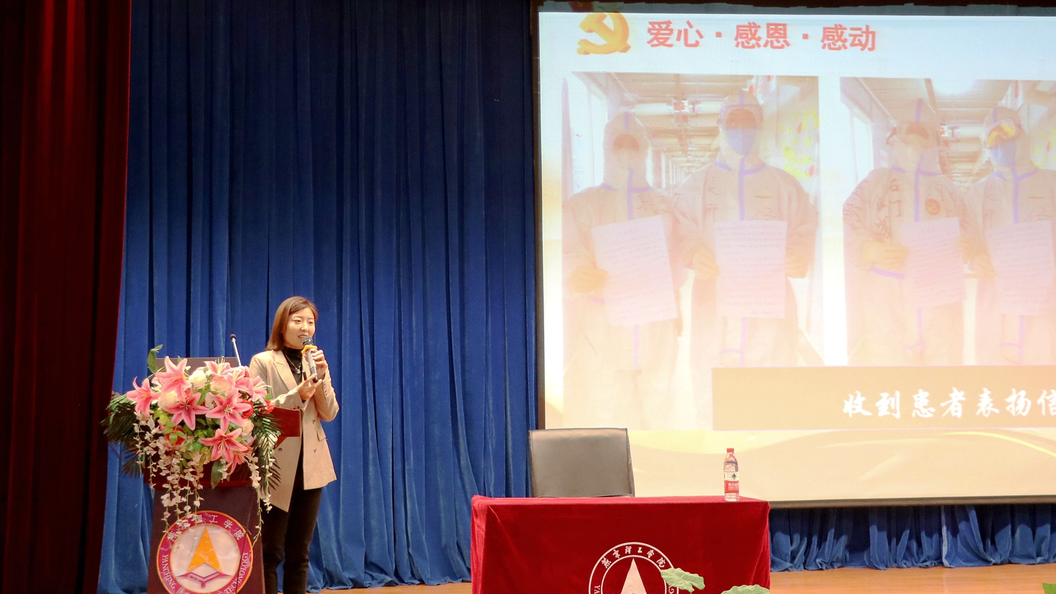 今年的感恩教育特别突出“战疫”关键词。学校邀请被湖北省人民政府授予新时代“最美逆行者”的河北省第七批援鄂医护人员侯娜,到校作“知恩于心感恩于行——不忘医者初心,牢记医者使命”主题报告。特殊时期,中国人民众志成城、逆行而上,用爱心、感恩作为抗击疫情最有力的武器,让中国力量被全世界看见。她倡议广大青年学生做勇敢走在时代前列的奋进者、开拓者、奉献者,担负起历史重任,让抗疫精神放射出更加夺目的时代光芒。