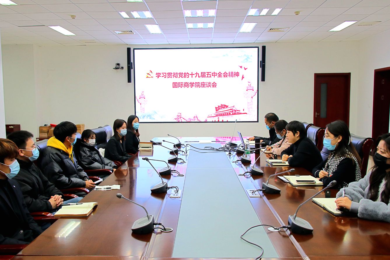 十九届五中全会为全体人民描绘出国家未来发展蓝图,明确了前进方向和奋斗目标。国际商学院要把学习十九届五中全会精神的内涵和要求转化为做好当前工作和学习的具体行动,推进各支部积极开展学习会、座谈会,统筹推进学院各项工作,推动十九届五中全会精神深入人心。