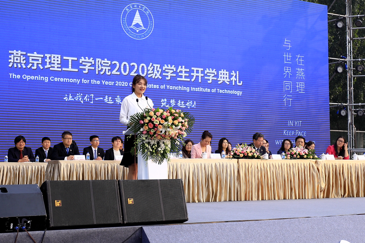 党委常务副书记、副校长刘元园教授在主持中说,在理事会、党委和校长办公会的正确领导下,学校坚持“高端化 国际化 个性化”的战略定位,形成了“团结拼搏,永争第一”的学校精神。她说,新同学的加入,让八万人拥有了“燕理人”这个共同的名字,你们必能成为学校新的名片,并从“命运共同体”出发,创造属于自己的高光时刻,成为新时代中国特色社会主义建设的重要见证者、参与者和创造者,贡献出燕理人的智慧和能量。