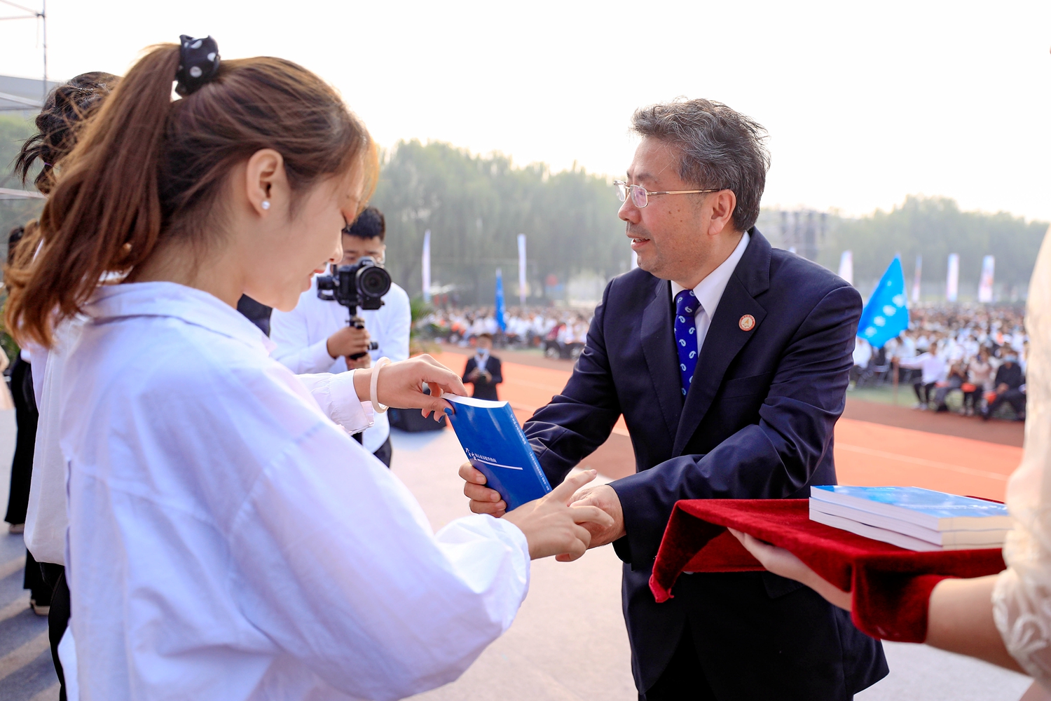 理事长吴保德教授代表学校向同学们赠送了一份特殊的入学礼——一本对同学们四年大学生活乃至人生规划具有现实指导意义的书籍《学生核心素养提升指南》。各学院学生代表集中上台接受赠书,聆听吴保德理事长对新同学们的谆谆嘱托,同学们翻看书中故事,以优秀为榜样,感受浓郁的大学精神和文化。