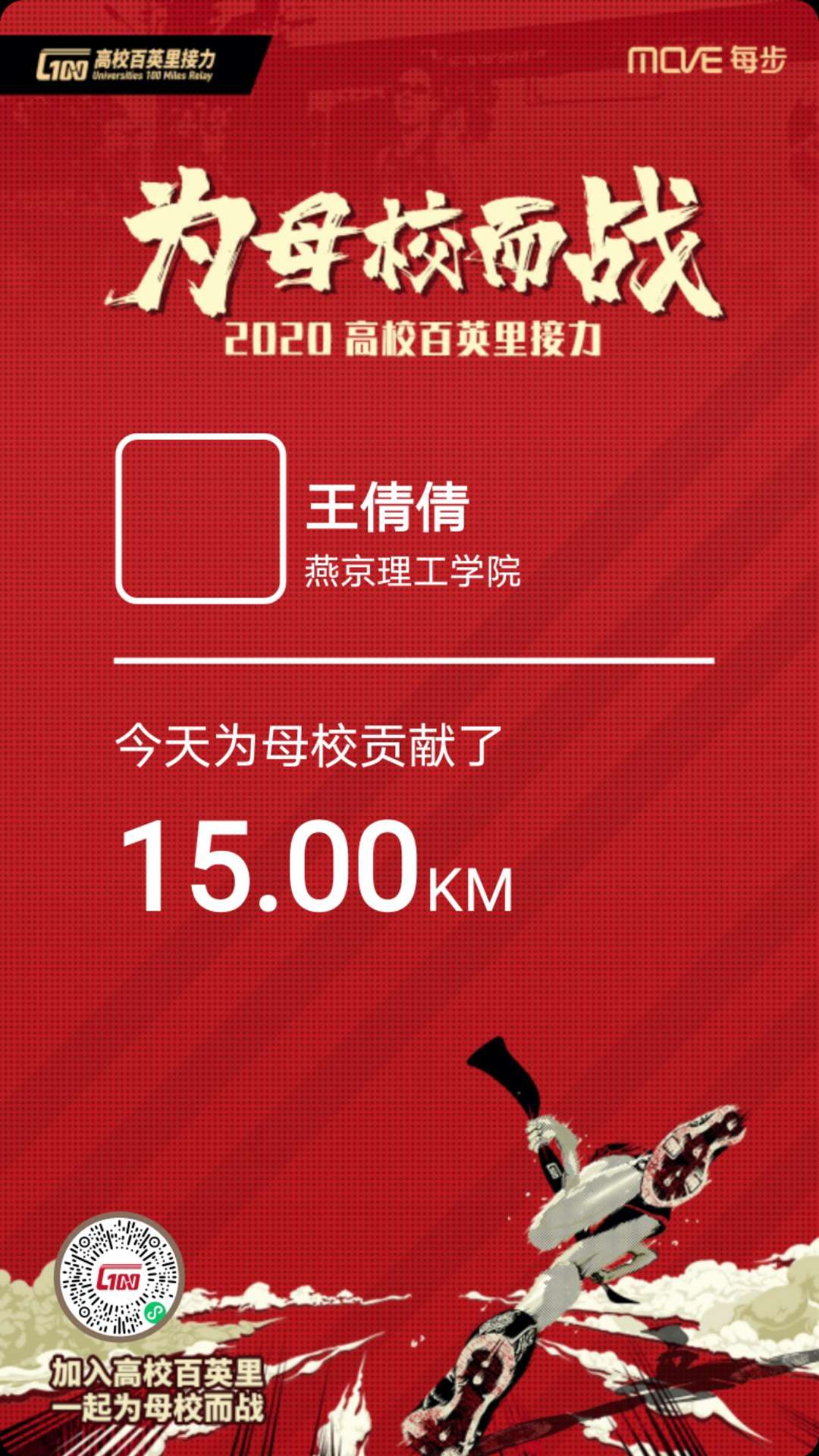 截至7日16时,据统计,有近300名师生完成了15KM助力跑,其他师生也坚持不懈,完成了1.5KM、5KM、7.5KM、10KM等破纪录成绩,共计完成里程4600余公里,跑出了更高、更快、更强的体育精神,跑出了燕理发展加速度。据组织方预估,到活动结束将完成15000公里助力跑,真正“为母校而战”。