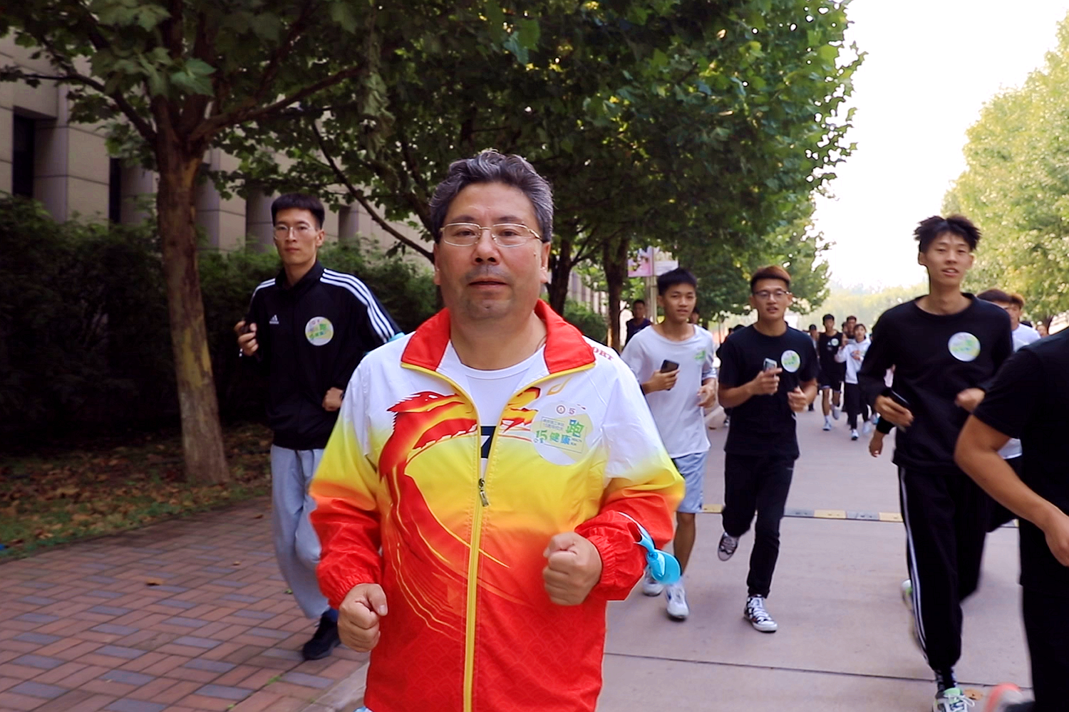 校长杨庚宇,副校长刘元园、王传超和吴汶燕与师生一起奔跑