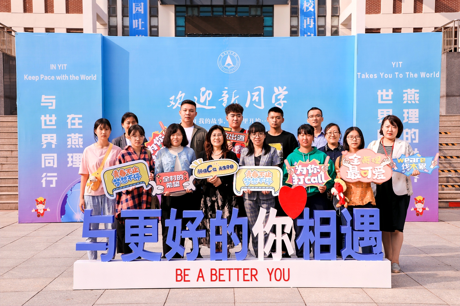 “青春不止,梦想不停”“全燕理最可爱”“颜值C位,天生夺目”“We are伐木累”“为你打CALL”……在学校和各学院留影墙前,学长学姐们制作了许多留影道具,新学弟学妹们也逐渐从拘谨到欢快,参与到全新的大学生活中来。