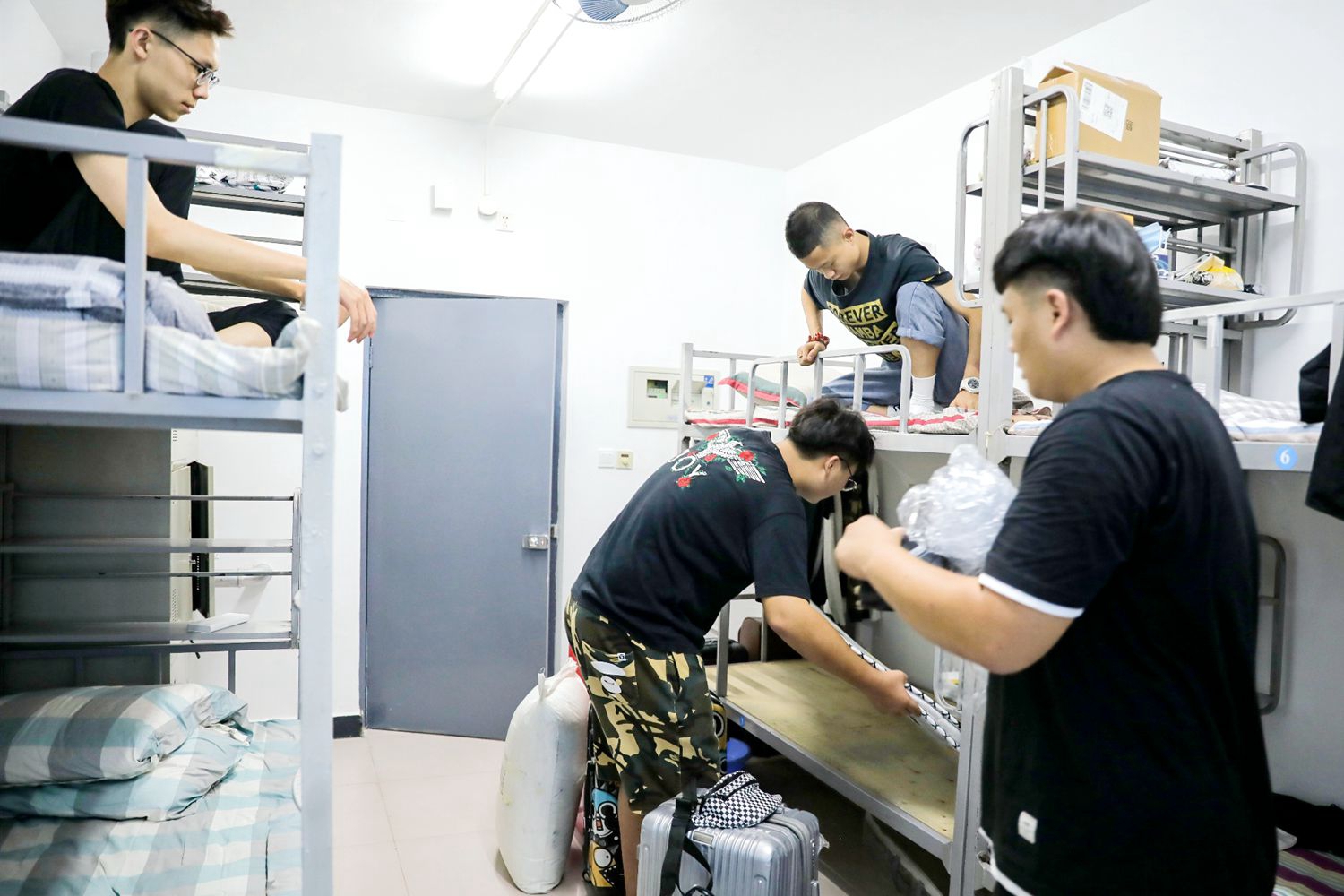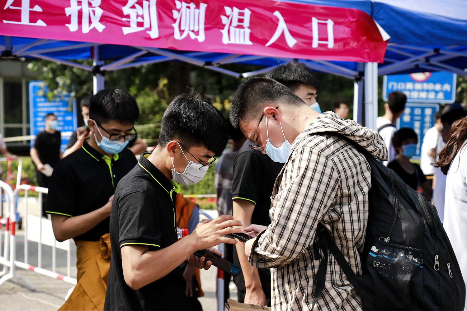 新生在学校门口检查进校后,直接到学生公寓报到注册、入住宿舍。任怀民 何泽坤 张明赫 摄