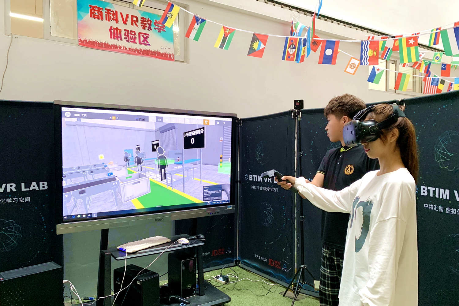 物流管理专业新生在商科VR教学体验区体验专业魅力。张朦 摄