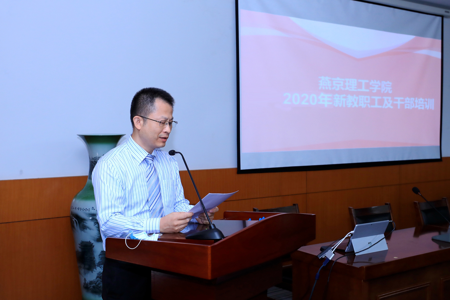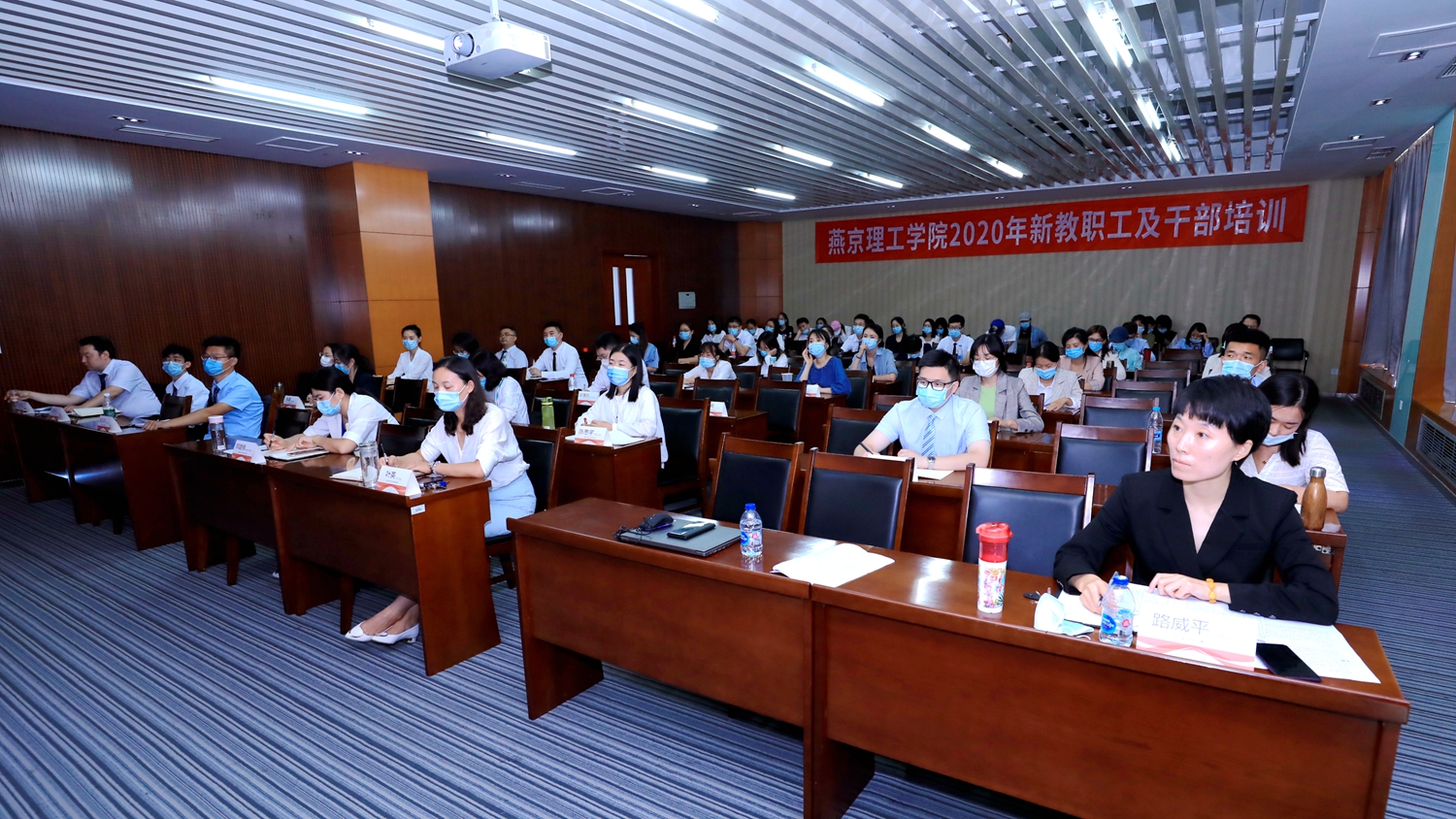 8月24日,2020年新教职工及干部培训会开班仪式在综合楼525会议室举行。学校领导吴保德、杨庚宇、李建英、刘元园、王传超,全体中层干部、学校干部学院第四期班学员与新教职工参加了开班仪式。开班仪式由人事处处长路威平主持。