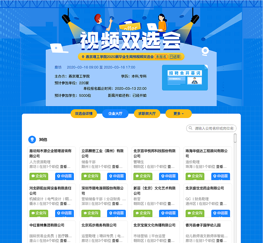 2020届毕业生网络视频双选会举办:e同战疫,云端就业