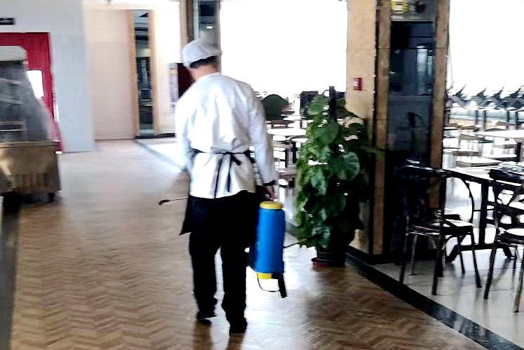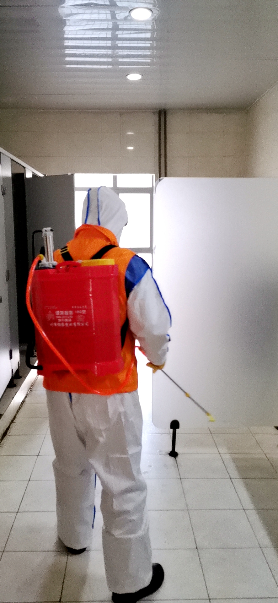 1月22日,学校下发通知,对学校大门实施管控。购买了测温仪、口罩,值班人员全部戴口罩上岗。后勤保卫人员加强校园巡逻,并对全校进行消毒工作。