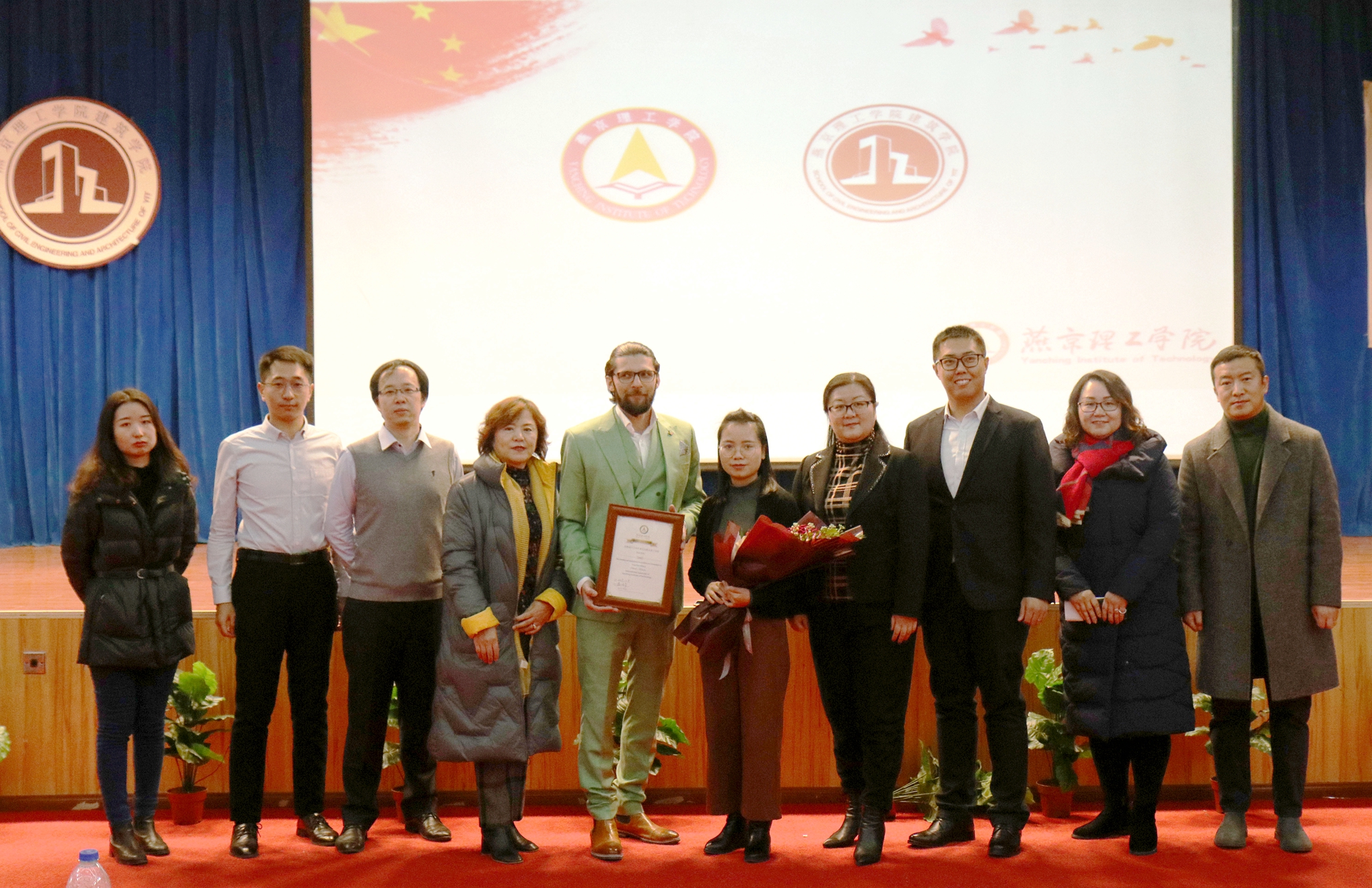 期间,建筑学院特聘请设计师为建筑学院的国际导师,燕京理工学院副校长吴汶燕教授为设计师颁发聘书。Dawid老师为同学生们签名题词。