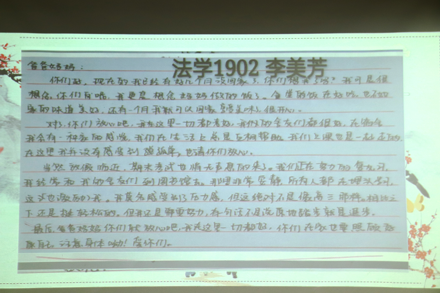 法学1902班李美芳同学的“一封家书”