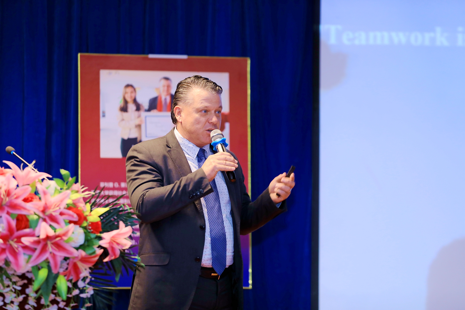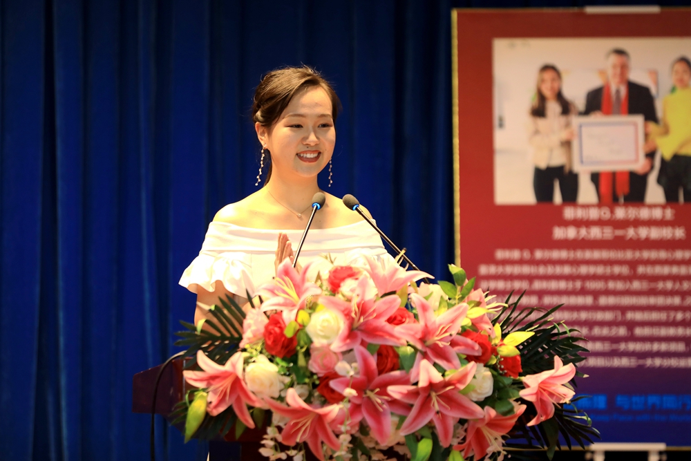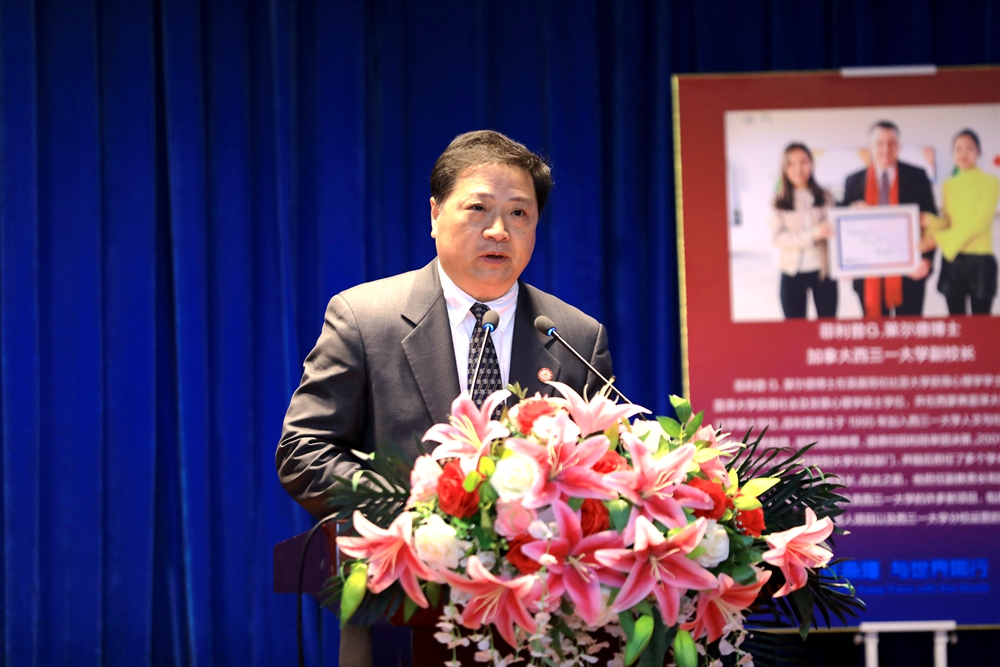 校长杨庚宇在致辞中说,Philip博士多次到访燕京理工学院,是大家的老朋友。他回顾了去年为师生讲授的领导力课程受到了热烈欢迎,启发了同学们对领导力的崭新思考,为同学们打开了了解世界的新视角,体会到了领导力的新境界,并希望同学们将来能有更多机会去加拿大西三一大学学习深造,成为国际精英人才。