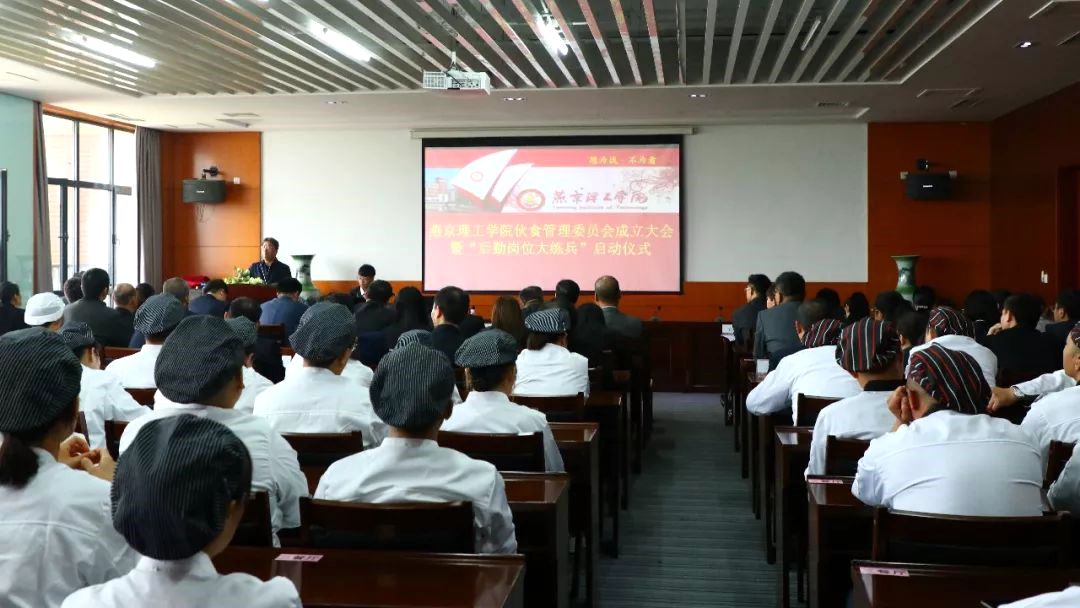 10月24日,伙食管理委员会成立大会暨后勤岗位大练兵启动仪式在525会议室召开。学校理事长吴保德,校长杨庚宇,副校长王传超出席大会,人事处、学生处、发展规划处、后勤资产处中层干部,学校第一、二、三餐厅法人及员工代表,保洁公司法人及员工代表,绿化公司法人及员工代表及全体后勤员工、伙食管理委员会学生干部共160余人参加了大会。